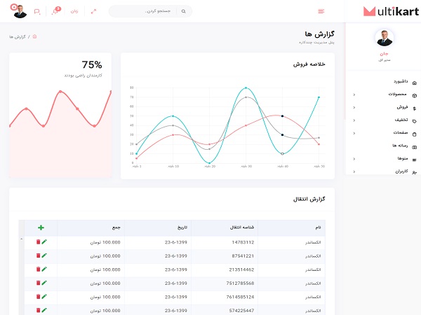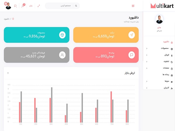دارای پنل مدیریت باطن قدرتمند برای مدیریت محصولات ، فروش ، کوپن تخفیف ، سفارشات ، کاربر ، فروشنده و موارد دیگر است.