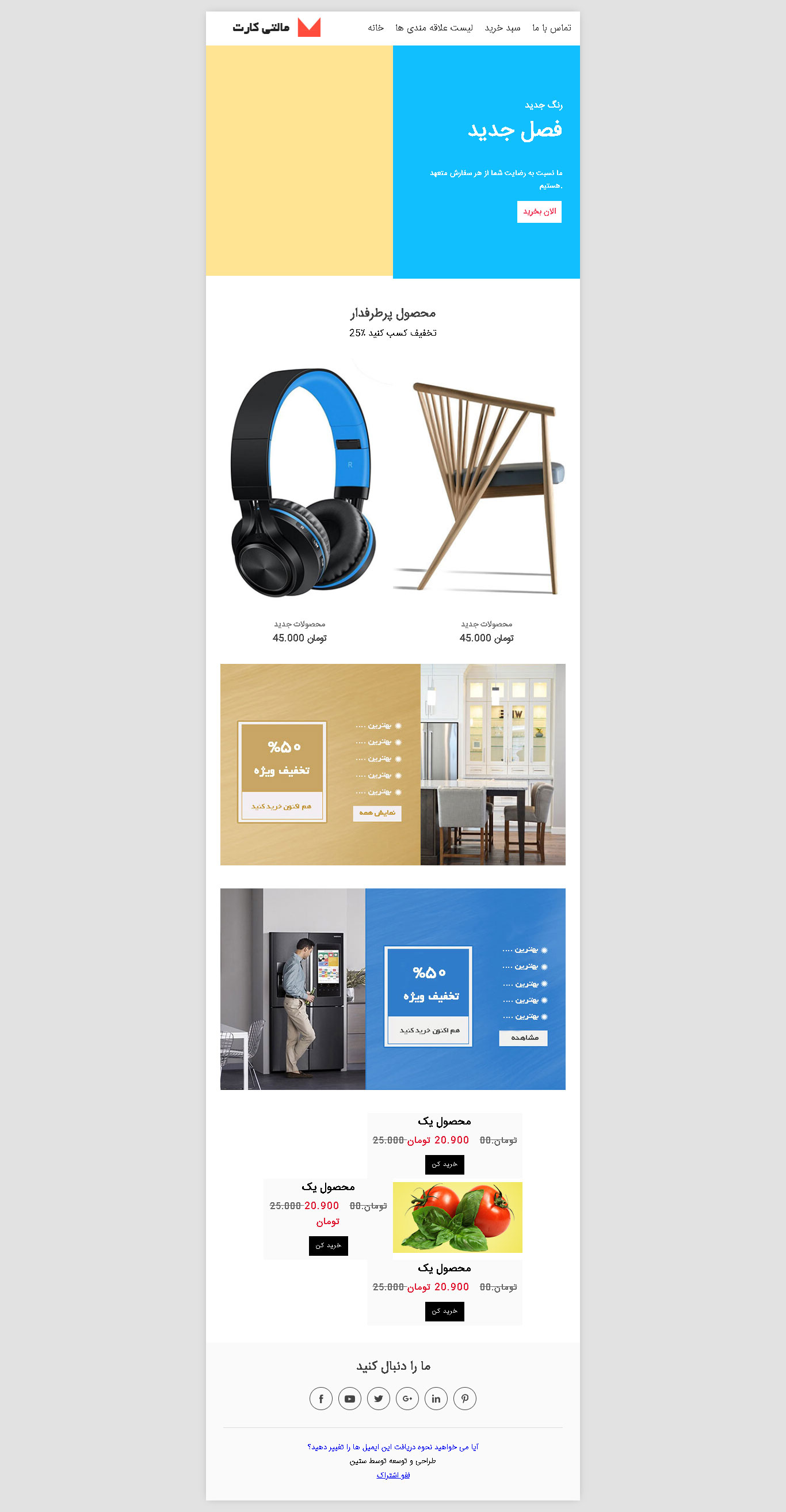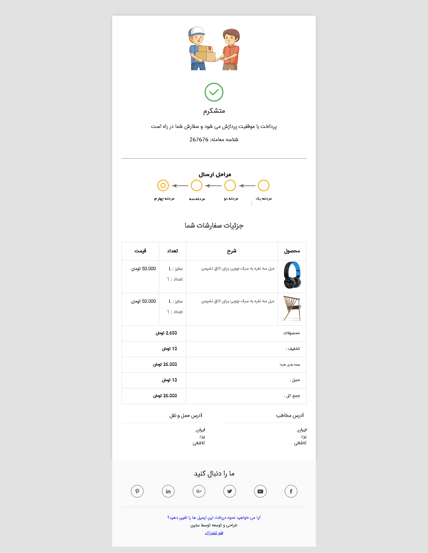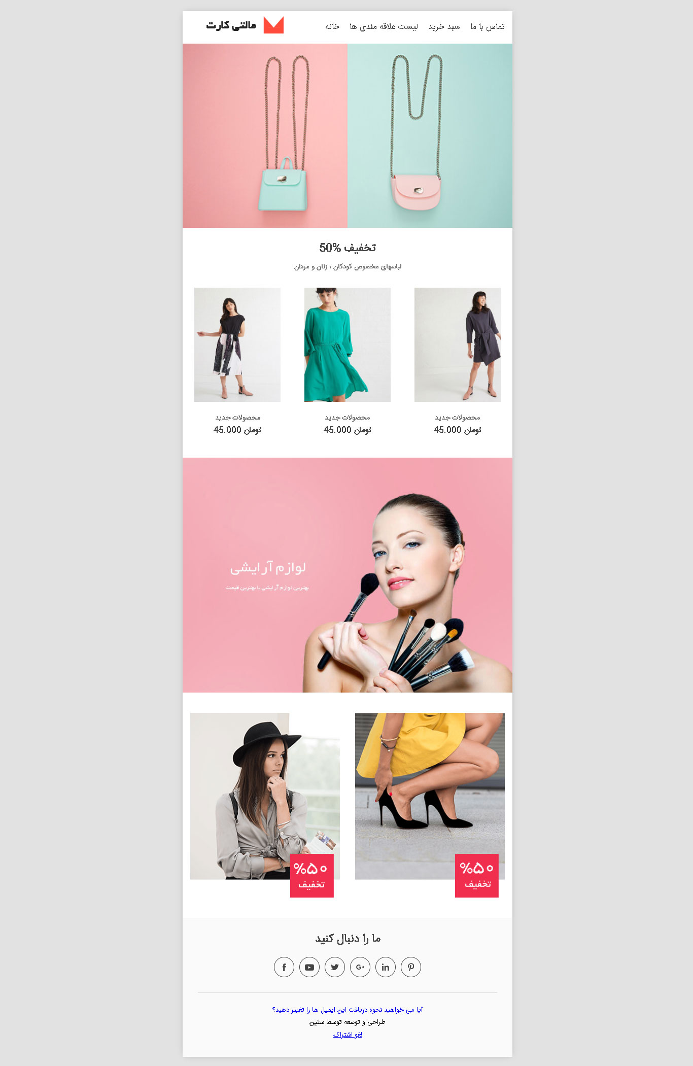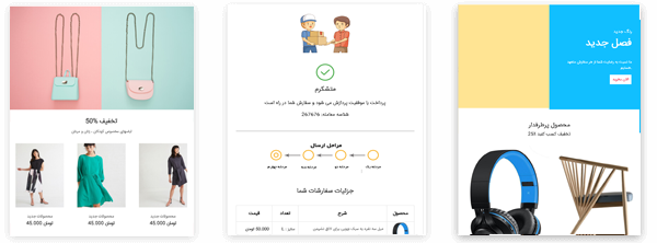 دارای بیش از 10 قالب ایمیل است که شامل دو الگوی موفقیت سفارش و دو الگوی ایمیل است