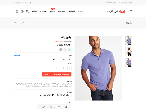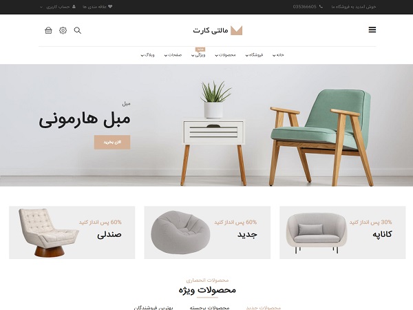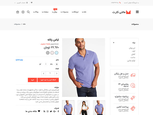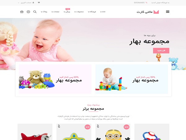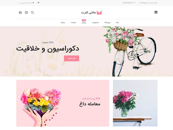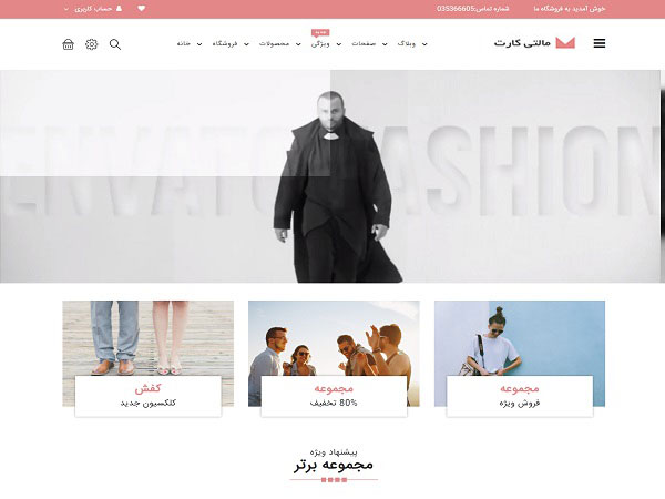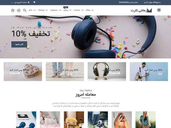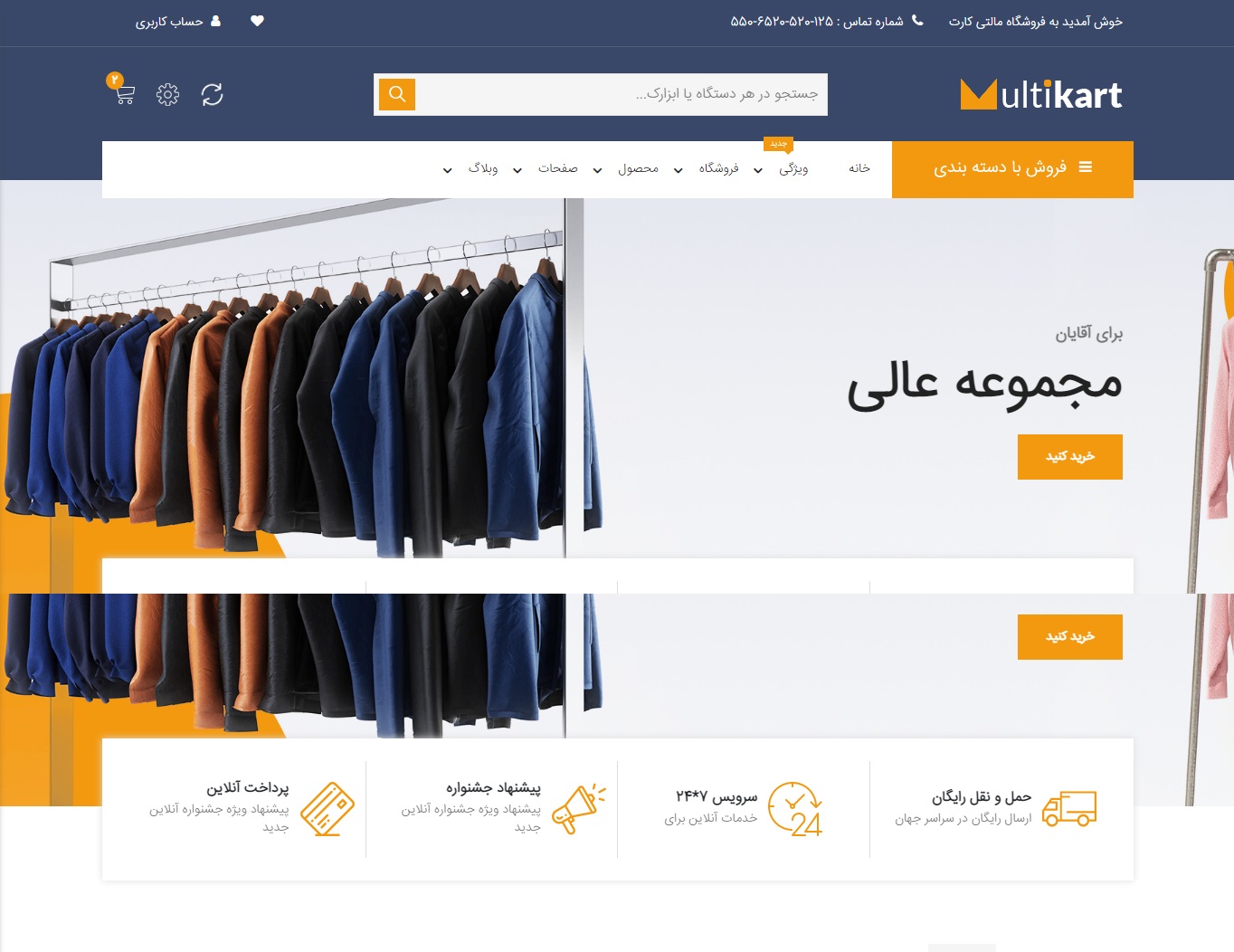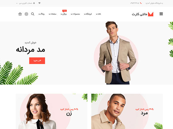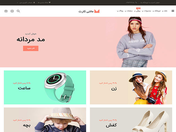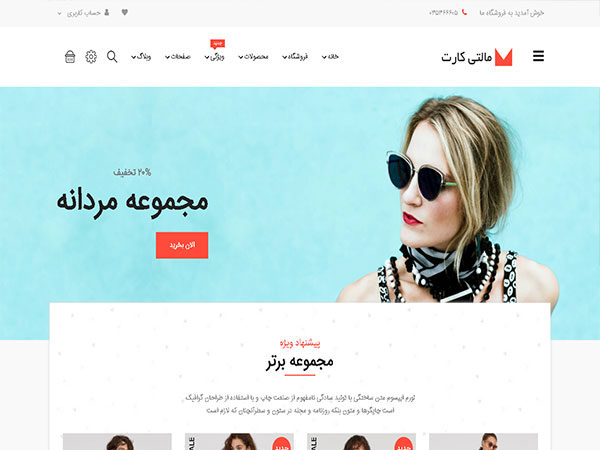 یک الگوی پاسخگو تمیز و مورفورن است. کاملاً مناسب برای هر نوع فروشگاه اینترنتی است