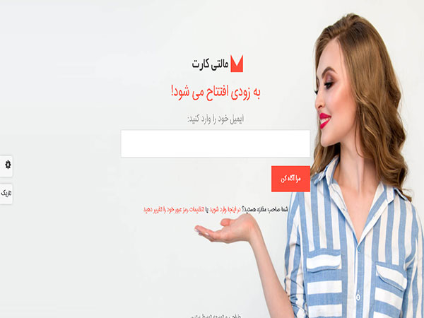 دارای یک پنجره بازشو خبرنامه، پنجره خروجی، پنجره بازشو تغییر سن و افزودن به سبد خرید است.