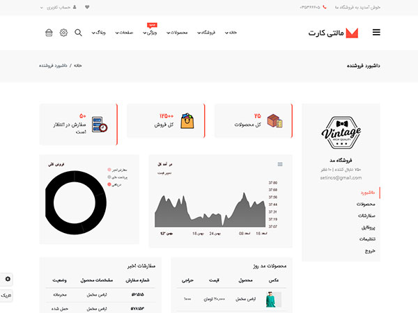 دارای صفحات فروشنده است که شامل داشبورد فروشنده، نمایه فروشنده و صفحه فروشنده می شود.