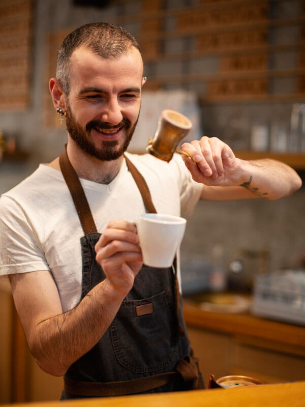 قهوه با تفت دادن دانه های سبز قهوه روی ذغال داغ در منقل دم می شود. هنگامی که لوبیاها برشته شدند، به هر شرکت کننده فرصت داده می شود تا دود معطر را با پخش کردن آن به سمت آنها نمونه برداری کند.